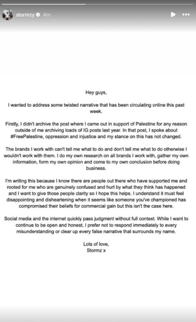 Stormzy who was vocal regarding the genocide in Gaza has received criticism over the last few months for accepting a sponsorship with McDonalds & removing his posts regarding Palestine.