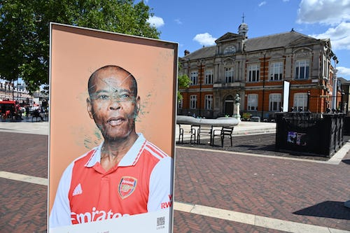The vandalised image of the late Clovis Salmon, also known as Sam the Wheels, a beloved Windrush documentarian whose photographs chronicled Black British life for decades (Pic: Ros Griffith)