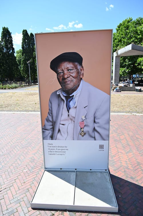 The exhibition was created by Friends of Windrush Square in collaboration with the Empathy Museum, Photofusion, Born or Made, & the Black Cultural Archives.